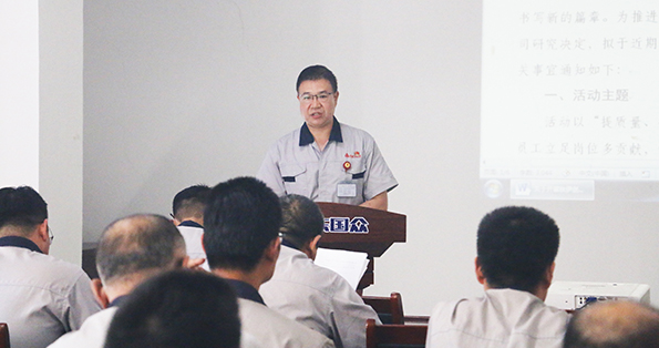會(huì)上,公司常務(wù)副總經(jīng)理崔新平全文傳達(dá)了公司《關(guān)于開(kāi)展“秋伊創(chuàng)新績(jī),啟航新征程”活動(dòng)的通知》,他在宣讀文件的同時(shí),詮釋了各條活動(dòng)項(xiàng)目的深刻內(nèi)涵。并通過(guò)列舉實(shí)例的方式,闡釋了活動(dòng)的重要意義,還點(diǎn)明了現(xiàn)實(shí)中存在的一些問(wèn)題,并提出了整改要求與措施。