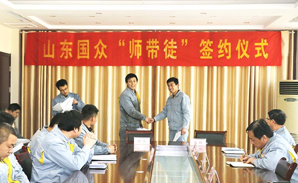 2017年3月14日,山東國眾機(jī)械科技有限公司隆重舉行“師帶徒”簽約儀式,公司總經(jīng)理謝文成、常務(wù)副總經(jīng)理劉文吉、崔新平等公司領(lǐng)導(dǎo)、公司各分部經(jīng)理及部分師傅與徒弟代表參加了儀式活動,劉文吉主持儀式。